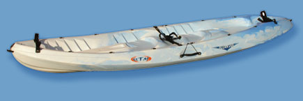 RTM ocean duo family kayak This double kayak, our best seller, is designed to accommodate 1, 2 or 3 people. Due to its’ unique centre seat it can also be paddled solo. This is the ideal choice for family use. Comfortable and dry it is a pleasure to paddle. Equipped with storage areas in the stern and centre of the boat. |
